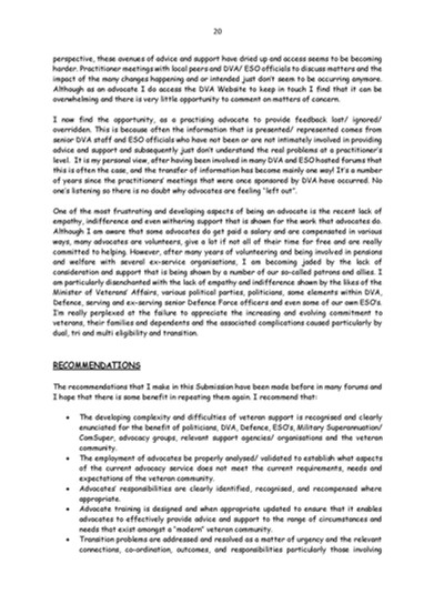 Enclosure: 1. Statement by ASASA Veterans’ Advocate John Burrows